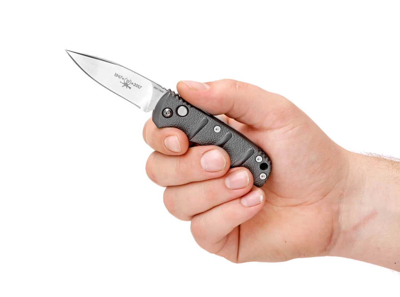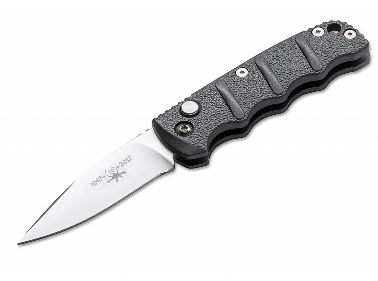 Mit dem 2013 verstorbenen General Michail Kalashnikov verband uns eine langjährige freundschaftliche Beziehung, und die Kalashnikov-Messer sind über die Jahre ein fester Bestandteil unseres Programms geworden. Zum 70-jährigen Dienstjubiläum des Sturmgewehrs AK-47 haben wir daher für alle Fans und Sammler dieser Messerserie, aber auch für anspruchsvolle Anwender, eine besonders hochwertige Jubiläumsedition konzipiert. So werden die Klingen der Jubiläumsmodelle aus dem pulvermetallurgischen Stahl CTS-XHP gefertigt, der sich durch eine exzellente Schnitthaltigkeit auszeichnet. Die feine Satinierung der Klinge und das Jubiläumslogo, das der Visierung der Kalashnikov nachempfunden ist, unterstreichen die Exklusivität dieser Serie. Der Aluminiumgriff in Gunmetal Grey setzt noch einen besonderen Akzent und verleiht den Messern eine besonders edle Anmutung. Limitiert auf 1.500 Stück weltweit.