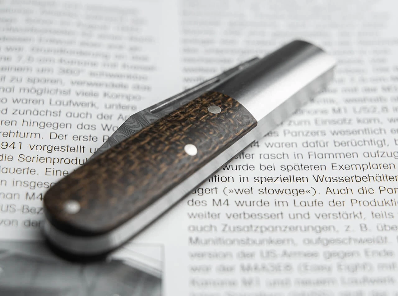 Das Böker Barlow M4 Sherman-Damast ist mit einer einzigartigen Damastklinge ausgestattet, die aus verschiedenen Materialien aus der Produktion von M4 Sherman-Panzern geschmiedet wird, die zuvor vom Museum restauriert wurden. Der einzigartige Damast aus 80 Lagen wird für uns von Hand von Chad Nichols im Muster Customized Ladder geschmiedet und erinnert an die Panzerspuren, die von den schweren Ketten des M4 Sherman im Boden zurückbleiben. Das in Integralbauweise ausgeführte Barlow ist mit Griffschalen aus Jute Micarta versehen, die farblich an die authentische Tarnlackierung der U.S. Army und dem Marine Corps erinnern. Die aus dem Vollen CNC-gefrästen Hefte aus rostfreiem Stahl bilden gleichzeitig die charakteristischen Backen und werden von Hand matt geschliffen. Mit hochwertigem Filz-Etui zur Aufbewahrung, Echtheitszertifikat und individueller Seriennummer. Handgefertigt in der Böker Messer-Manufaktur Solingen.