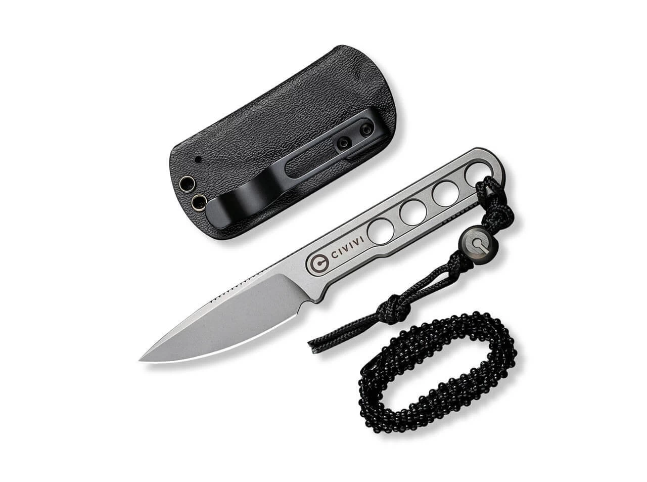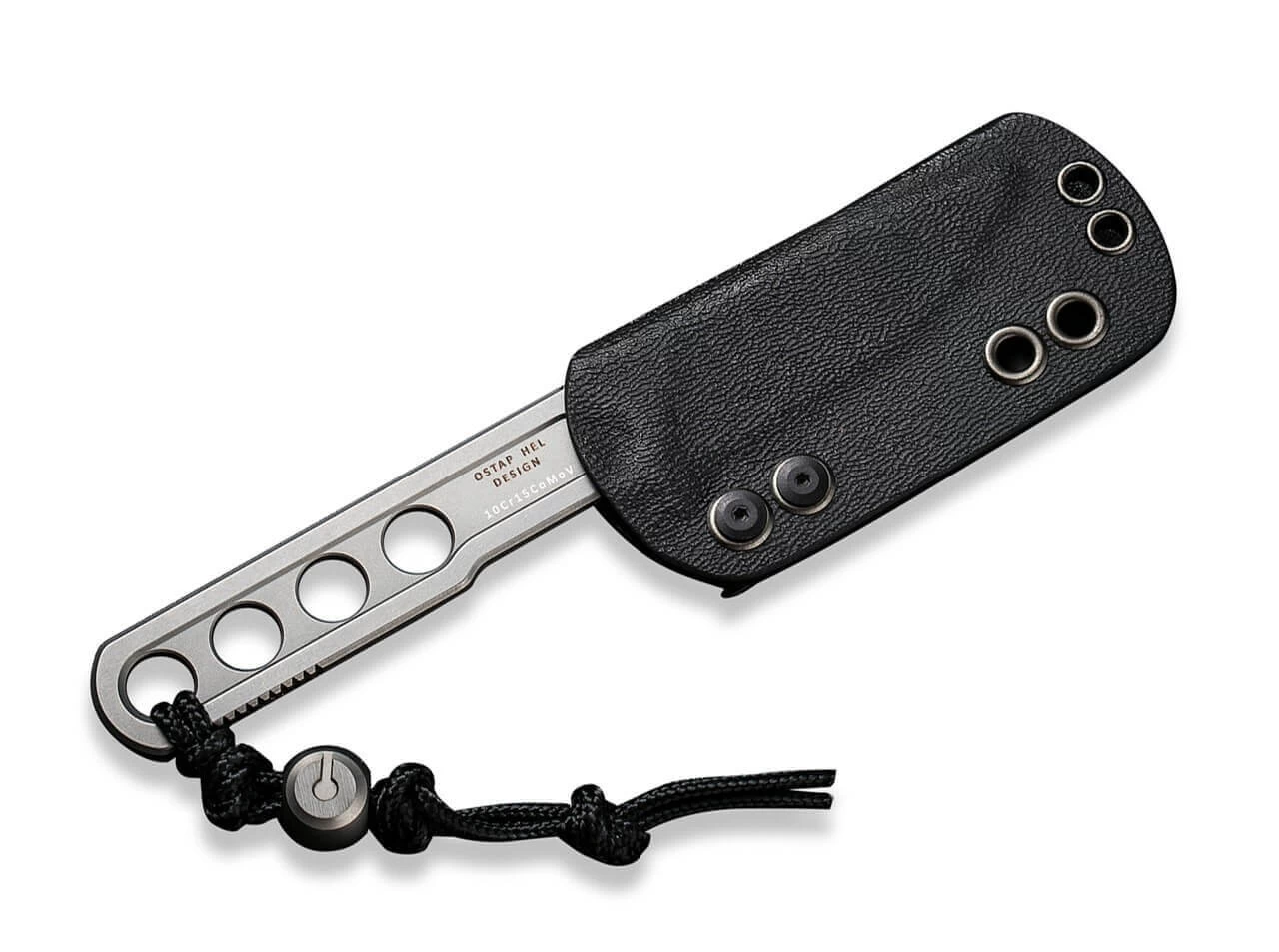 Taktisch praktisch: Das kompakte Neck Knife von Ostap Hel hinterlässt im Alltag einen souveränen Eindruck und vereint minimalistisches Design mit kompromissloser Performance. Die Ganzsstahlkonstruktion aus 10Cr15CoMoV mit flachgeschliffener Droppoint-Klinge erledigt selbst schwierige Einsätze mühelos. Der Edelstahlgriff ist mit vier großen Aussparungen versehen, die das Gewicht reduzieren, die Haptik verbessern und viele Befestigungsvarianten erlauben. Riffelungen am Griff und Klingenrücken erhöhen die Arbeitssicherheit zusätzlich. Mit passgenauer Kydexscheide und Kugelkette.