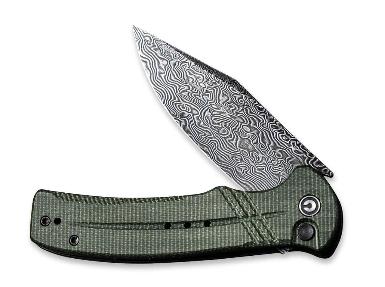 Das Civivi Cogent untermalt seine Position als praktisches EDC Messer mit überzeugenden Argumenten wie der edlen Damast-Klinge sowie dem rutschfesten Griff aus dunkelgrünem Micarta. Dank leichtgängigem Flipper und dem sicheren Button Lock Mechanismus hat der Folder noch zwei weitere Asse im Ärmel, die den alltäglichen Schneidarbeiten mühelos den Garaus machen.