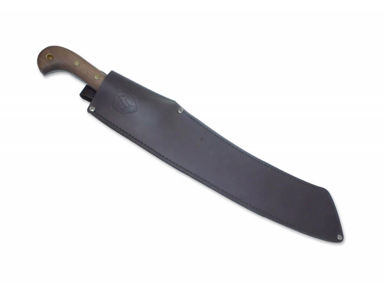 Die asiatischen Wurzeln der Duku-Machete verhelfen ihr zu ihrer großen Effektivität. Das verbreiterte Griffende sorgt für sicheren Halt bei schwereren Hackarbeiten, und die Klinge aus 1075 Kohlenstoffstahl (nicht rostfrei) beißt sich durch alles, was wächst, rankt und wuchert. Griffbeschalung aus Walnussholz. Die Lieferung erfolgt mit Lederscheide.