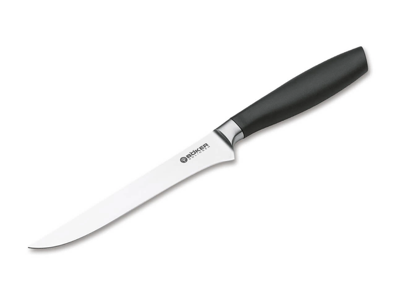 Die jahrzehntelange Erfahrung, das ausgezeichnete Know-How und das tagtäglich im Geschäftsalltag bewiesene Gespür für die Anforderungen und Bedürfnisse von koch- und küchenbegeisterten Kunden haben wir uns zunutze gemacht und gemeinsam mit unserer fast 150-jährige Erfahrung als Solinger Messermanufaktur in die Produktentwicklung der Böker Core Professional Serie fließen zu lassen. Entstanden ist ein Produkt, welches sich aufgrund der dynamischen Linienführung, dem hervorragenden Handling und der atemberaubenden Schneidfähigkeiten das Prädikat „Empfohlen von führenden Fachhändlern“ mehr als verdient hat.
