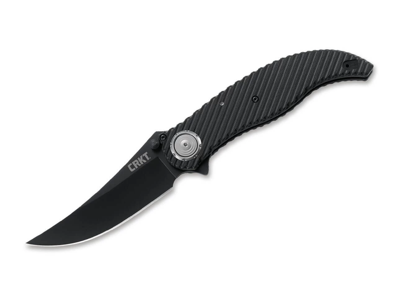 Der Clever Girl Folder von CRKT ist ebenso wie die feststehende Version komplett in Schwarz gehalten und mit einem strukturierten G10-Griff ausgestattet. Die kugelgelagerte Klinge wird aus D2 gefertigt und ist mit einer widerstandsfähigen Beschichtung versehen. Der Designer Austin McGlaun vertritt die sehr eigene Auffassung, dass ein Messer nicht hübsch sein muss. Solange kompromisslose Funktionalität gewährleistet ist, sieht er einen Entwurf als perfekt an. Nichtsdestoweniger ist ihm mit dem Clever Girl ein großer Wurf gelungen. Zur schnellen Öffnung der Klinge dient ein Flipper, gesichert wird das Messer durch den innovativen Deadbolt-Mechanismus. Mit umsetzbarem schwarzen Clip (Tip-up/l-r-).