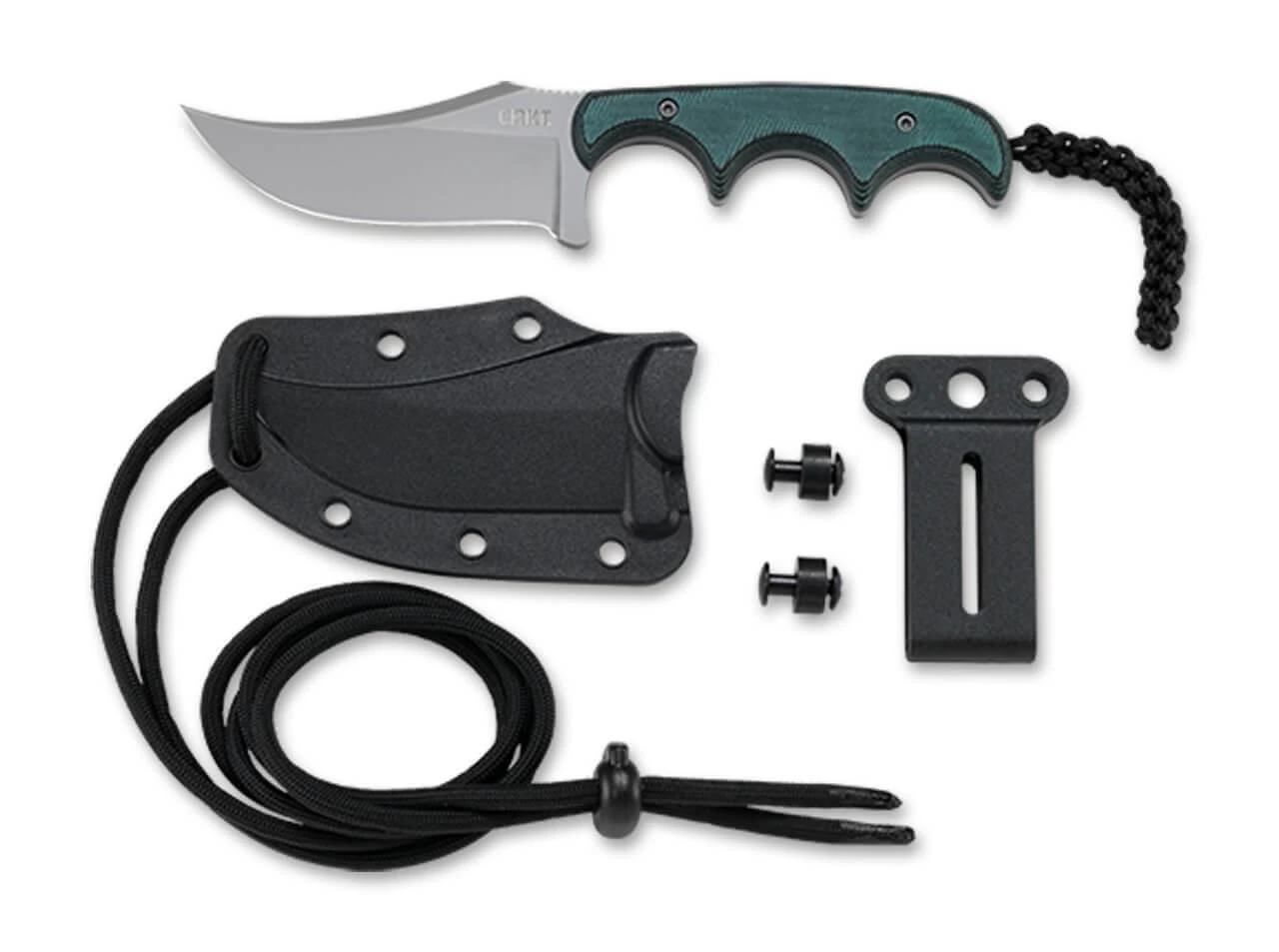 Die beliebte Messerreihe von Alan Folts bekommt einen exotischen Ableger. Das CRKT Minimalist Persian trägt eine persische Klinge aus 8Cr13MoV mit der typisch hochgezogenen Klingenspitze. Der ergonomische Griff aus Micarta ist in einem petrolgrün gehalten und liegt dank ergonomischer Fingermulden auch bei schwierigen Schneidaufgaben perfekt in der Hand. Mit passgenauer Kunststoffscheide, Clip und Lanyard.