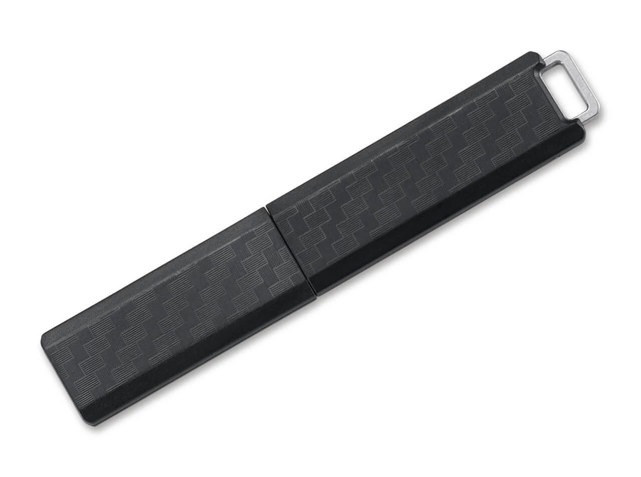 Dieser außergewöhnliche Entwurf von Designer T.J. Schwarz erinnert stark an einen Textmarker. Dennoch überrascht das kompakte feststehende Messer mit einer hohen Praxistauglichkeit. Die Klinge aus 5Cr15MoV ist für viele Schneidarbeiten des Alltags ideal geeignet. Besonders hervorzuheben sind die flache Bauweise und der Schutzdeckel, welche einen sicheren und einfachen Transport des Messers erlauben. Griff und Deckel sind aus FRN gefertigt und bilden im geschlossenen Zustand eine Einheit. Mit Fangriemenöse.