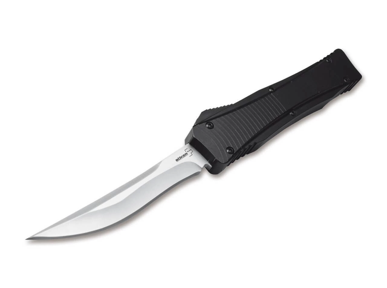 Das Böker Plus Eagle OTF-Springmesser nach dem Design von Raimund Lhotak liegt durch die Strukturierung des titanbeschichteten Griffes und das ergonomische Design ausgezeichnet in der Hand. Die zuverlässige Mechanik öffnet und schließt die Klinge per Federkraft über den Auslöseschieber, wodurch eine schnelle Bedienung gewährleistet ist. Die atemberaubenden dynamischen Schlifflinien und das Two-Tone Finish machen das Messer auch zu einem exquisiten Sammlerstück. Mit Recurve-Klinge aus D2.