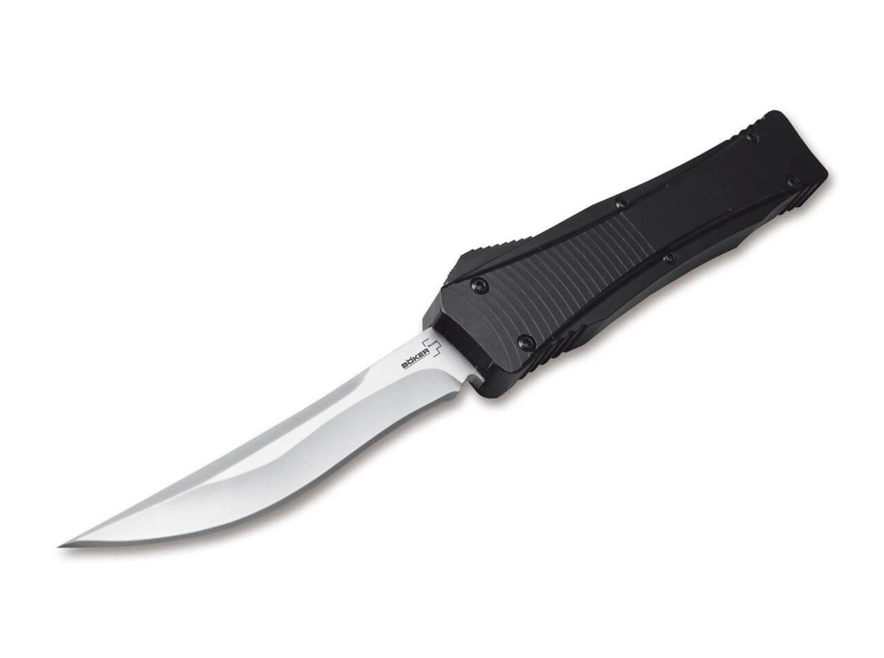 Das Böker Plus Eagle OTF-Springmesser nach dem Design von Raimund Lhotak liegt durch die Strukturierung des titanbeschichteten Griffes und das ergonomische Design ausgezeichnet in der Hand. Die zuverlässige Mechanik öffnet und schließt die Klinge per Federkraft über den Auslöseschieber, wodurch eine schnelle Bedienung gewährleistet ist. Die atemberaubenden dynamischen Schlifflinien und das Two-Tone Finish machen das Messer auch zu einem exquisiten Sammlerstück. Mit Recurve-Klinge.
