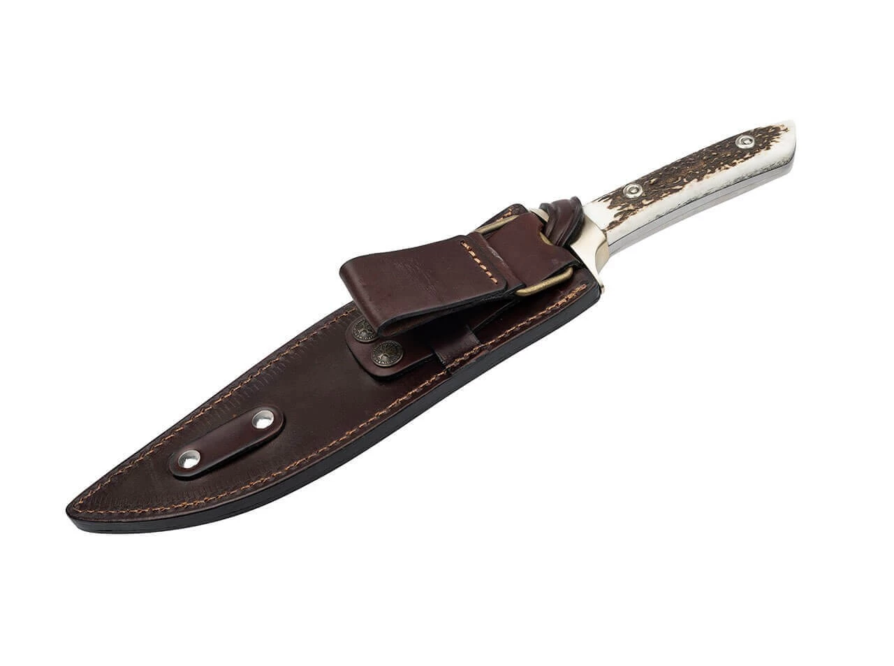 Eine Lücke im Sortiment schließen wir mit dem El Gigante mit Hirschhornbeschalung. Das überaus robuste Bowiemesser in Fulltang-Bauweise hat schon viele Outdoor-Enthusiasten und Jäger begeistert. Mit der Beschalung aus ausgesuchtem Hirschhorn ist es nun perfekt ausgestattet für den jagdlichen Einsatz und überzeugt als Standhauer, ebenso wie als effektives Abfangmesser für Schwarzwild, oder den kapitaleren Hirsch. Klingenstahl ACX390. Edelstahl-Parierelement. Lieferung mit hochwertiger Lederscheide.