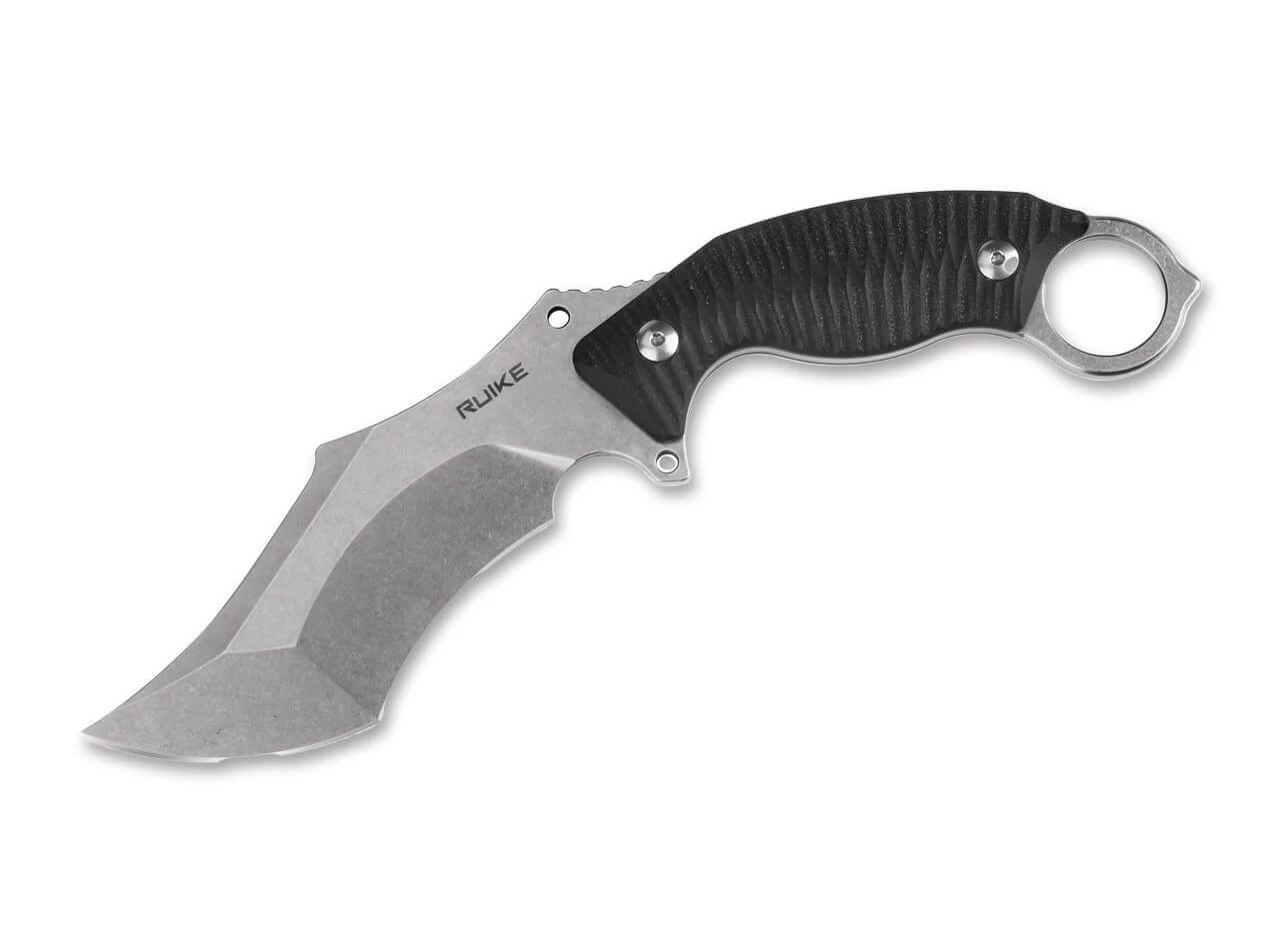 Seine taktischen Gene kann das Ruike F181 nicht verbergen. Das feststehende Messer vereint Elemente aus Karambit und Tanto in einem alltagstauglichen Mix aus 14C28N Klinge und texturiertem G10 Griff. Der Ring am Griffende kann zudem als Fangriemenöse verwendet werden. Lieferung mit passgenauer Scheide.