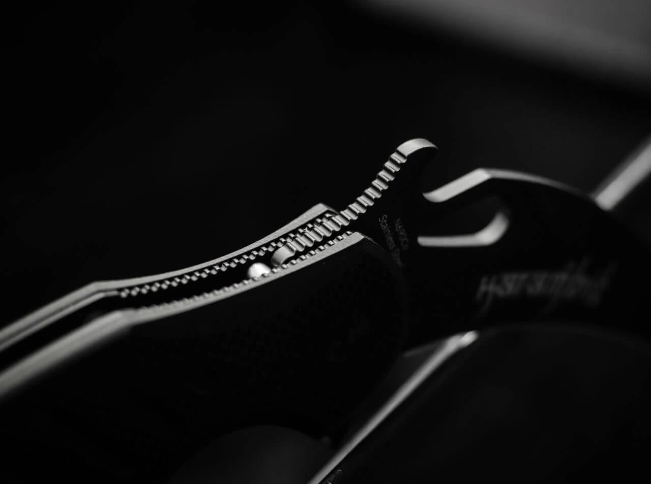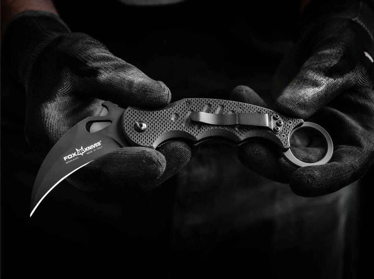 Ernest Emerson war ein Vorreiter für die Renaissance dieses Messertyps. Von ihm stammt auch das Patent des sogenannte Emerson Wave, einem kleinen Haken am Klingenrücken, der es erlaubt, die Klinge beim Ziehen aus der Hosentasche gleichzeitig zu öffnen. Die Klinge des FKMD Folding Kerambit wird aus N690 gefertigt und ist mit einer schwarzen Beschichtung versehen. Sie wird per Daumenöffnung oder Emerson Wave geöffnet und von einem stabilen Linerlock zuverlässig arretiert. Die Griffschalen bestehen aus strukturiertem G10 und liegen dank der ergonomischen Formgebung stets sicher in der Hand. Mit Clip (Tip-up/r).