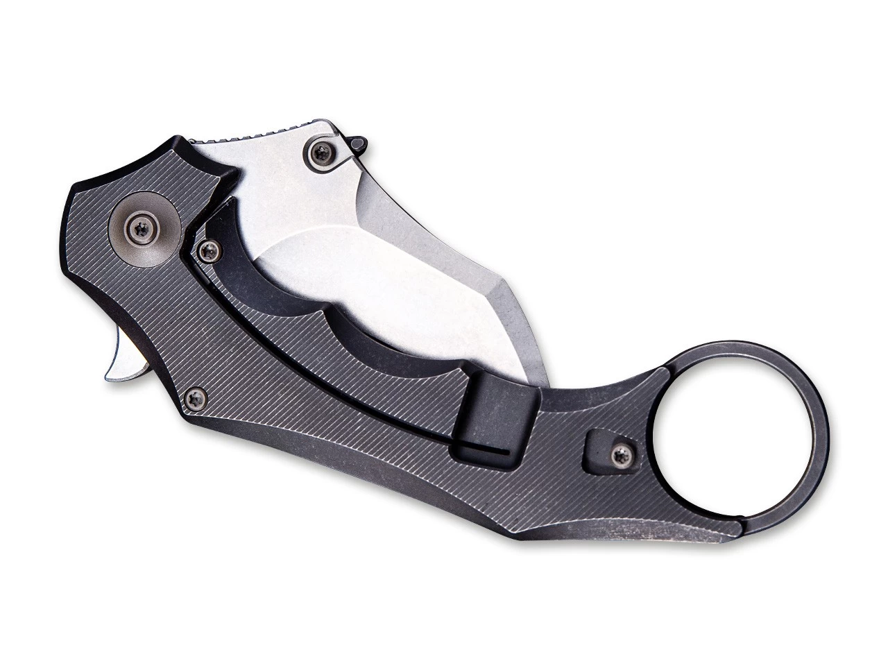 Das WE Knife Incisor ist ein Titan–Framelock Kerambit mit einer Klinge aus CPM-S-35VN und keramischem Kugellager. Der Daumenpin fungiert auch als Öffnungshaken für den Taschensaum, zusätzlich steht der Flipper zum manuellen Öffnen zur Verfügung. Mit Titan-Spacer, aus dem Vollen gefrästem Titanclip (umsetzbar l/r) und Titanschrauben.