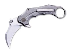 Das WE Knife Incisor ist ein Titan–Framelock Kerambit mit einer Klinge aus CPM-S-35VN und keramischem Kugellager. Der Daumenpin fungiert auch als Öffnungshaken für den Taschensaum, zusätzlich steht der Flipper zum manuellen Öffnen zur Verfügung. Mit Titan-Spacer, aus dem Vollen gefrästem Titanclip (umsetzbar l/r) und Titanschrauben.