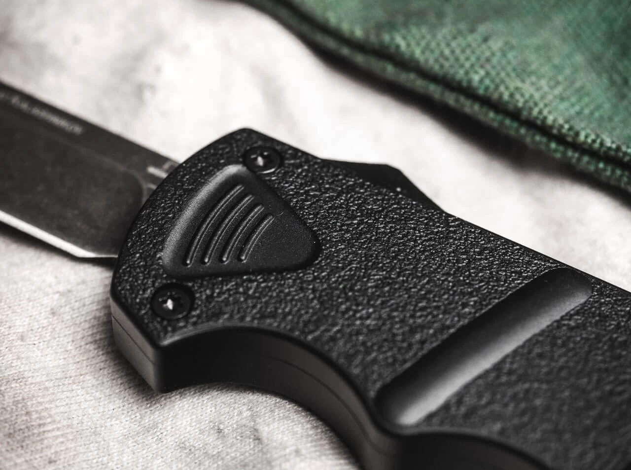 Das robuste Böker Plus Kalashnikov OTF erweitert die beliebte Kalashnikov-Serie um ein modernes OTF. Der schwarze Griff aus Aluminium erinnert stark an das Bajonett des berühmten Sturmgewehrs, die erhabenen Strukturbahnen bieten zudem in jeder Situation sicheren Halt. Die mit einem dunklen Stonewash-Finish versehene Bowie-Klinge wird aus D2 gefertigt und lässt sich bequem über einen Schieber auf dem Griffrücken bedienen. Mit praktischem Deep-Carry-Clip (Tip-down).