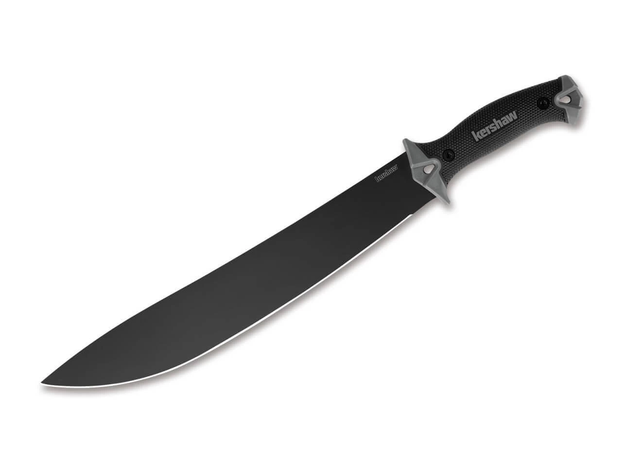 Die zuverlässige Kershaw Camp 14 Machete ist mit einer langen Kohlenstoff-Klinge aus 65Mn ausgestattet. Um den Stahl vor Korrosion zu schützten, ist er zusätzlich mit einer schwarzen Oxid-Beschichtung versehen. Der gummierte Griff ist grob texturiert und liegt auch bei Nässe stets sicher in der Hand. Mit Fangriemenöse und Kunststoffscheide.