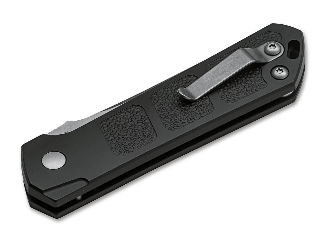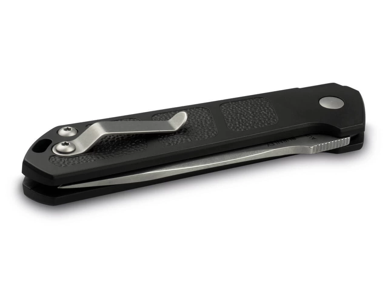 Das von Lucas Burnley entworfene Böker Plus Kihon Auto ist ein überaus robustes und gleichzeitig preisgünstiges Automatikmesser für Einsatz und Alltag. Der amerikanische Messermacher kombiniert auch beim Kihon geschickt japanische Designelemente mit taktischen Elementen. Das Taschenmesser ist mit einer Stonewash-Klinge aus AUS-8 ausgestattet, die an ein klassisches japanisches Schwert erinnert und per Druckknopf geöffnet wird. Die schwarzen Griffschalen bestehen aus leichtgewichtigem Aluminium und sind mit texturierten Flächen versehen. Mit Fangriemenöse, kurzem Clip (Tip-up) und hochwertigem Nylon-Etui zur Aufbewahrung.
