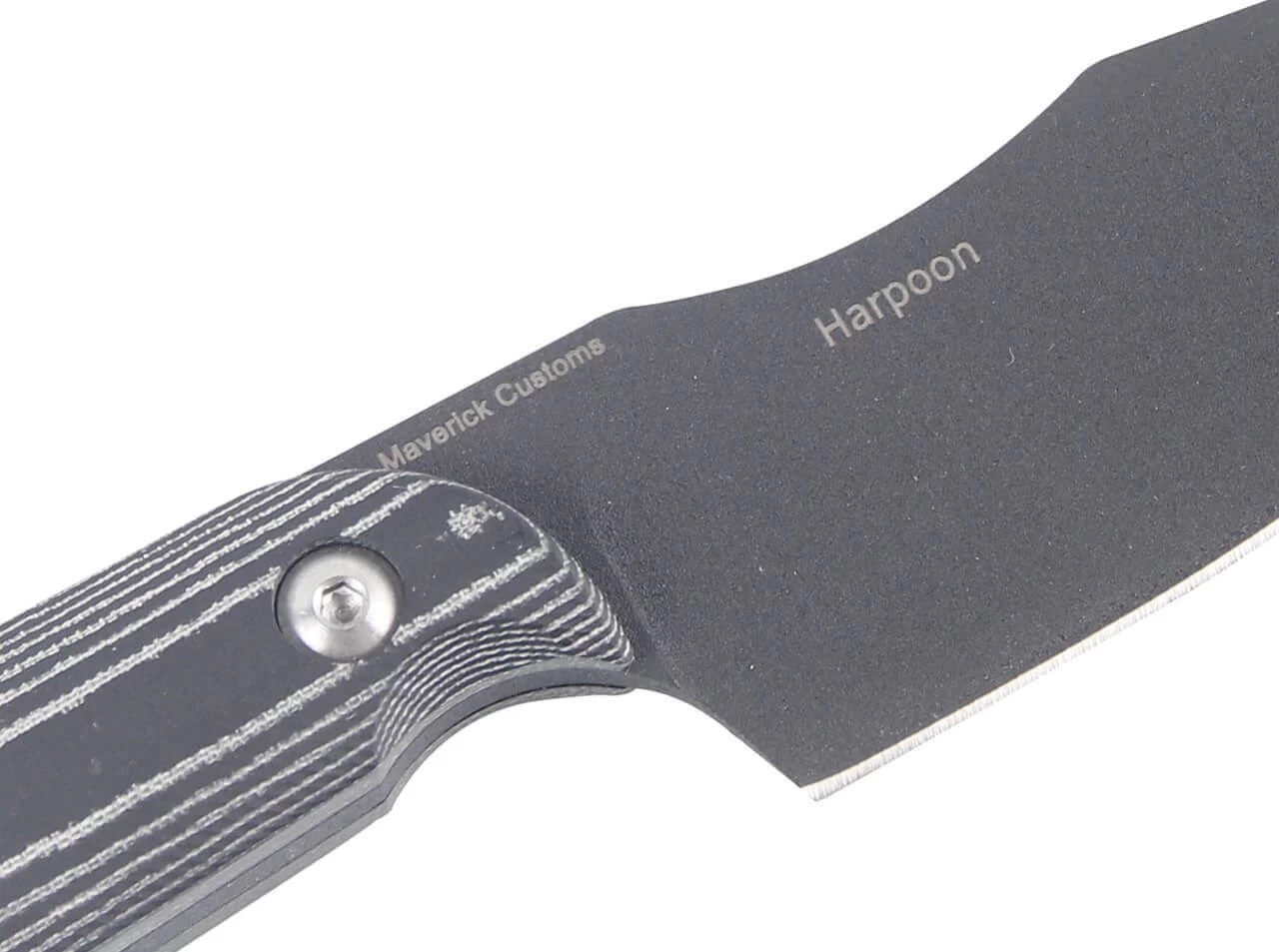 Das Harpoon von Kizer entstand in Zusammenarbeit mit James Buckley von Maverick Customs, der bekannt ist für seine relativ preisgünstigen und langlebigen feststehenden Messer. Besonders auffallend ist die große tropfenförmige Klinge aus D2, die die Proportionen und Geometrie westlicher Kochmesser fast kannibalisiert. Eine Fingermulde im Klingenrücken bietet dem Anwender einen Platz, an dem der Finger zur Führung bei Schneidaufgaben angelegt werden kann. Die Vollerl-Bauweise verleiht zusätzliche Stabilität und Belastbarkeit, die Griffschalen bestehen aus rutschfestem Micarta. Mit Fangriemenöse und Kydexscheide.