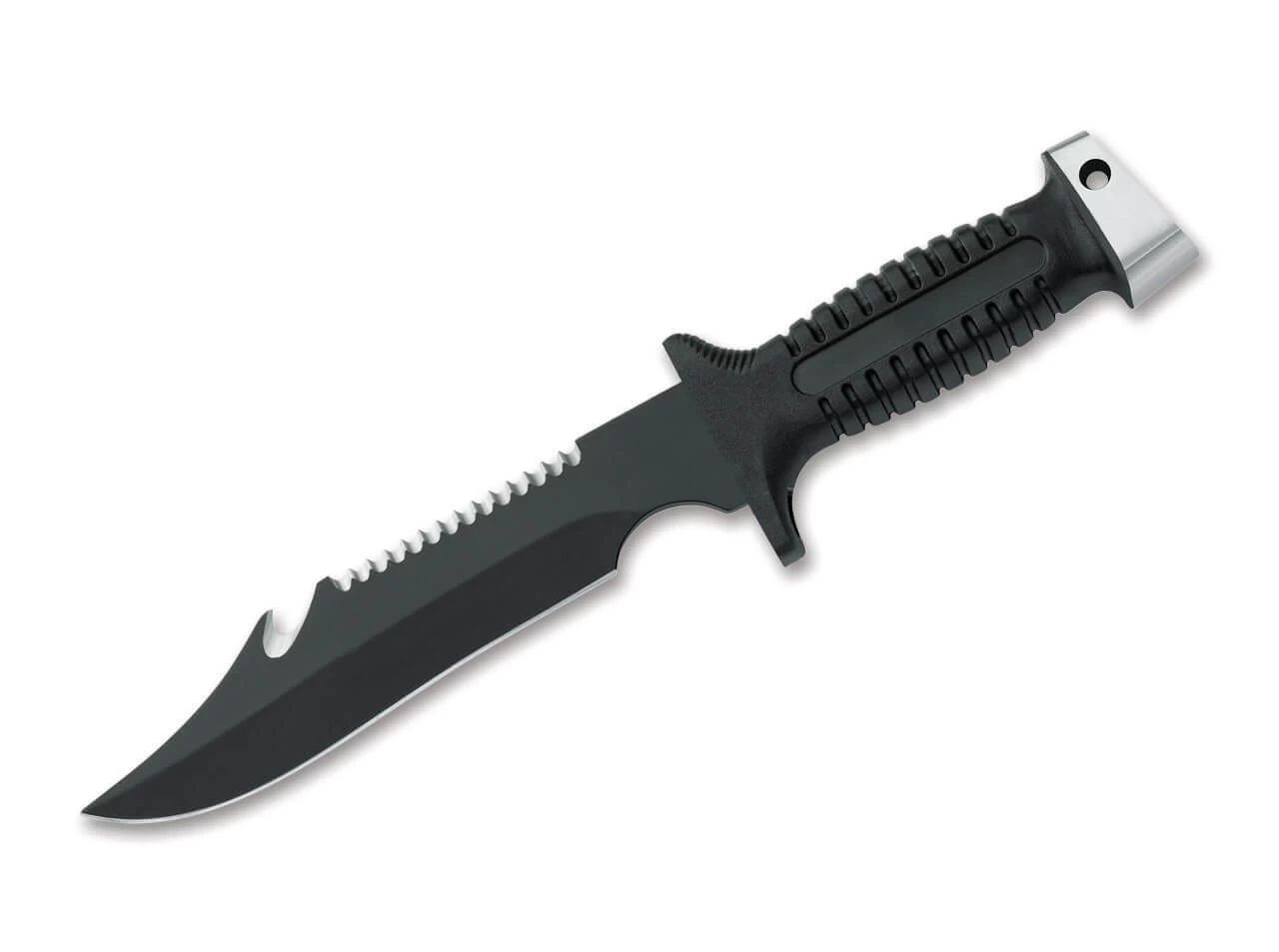 Das professionelle Tauchermesser Shark M von MAC ist mit einer beschichteten Klinge aus 4116 ausgestattet, die zusätzlich über einen bissigen Wellenschliff und einen Gurtschneider verfügt. Der schwarze Griff aus rutschfestem Polypropylen liegt auch unter Wasser sicher in der Hand. Lieferung mit Polypropylen-Scheide mit Gummibändern für Beine oder Arme.