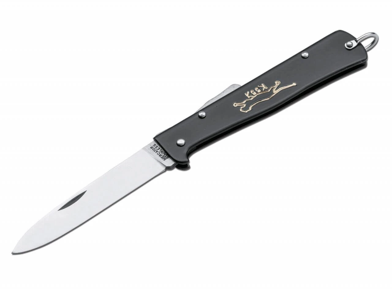 Dieses Klappmesser ist das mit Abstand bekannteste Messer von Otter. Die Geschichte des Modells geht zurück bis ins Jahr 1867, als die Firma Heinrich Kaufmann & Söhne Indiawerk das Mercatormesser entwickelt und produziert hat und als D.R.G.M. (Deutsches Reich Gebrauchs Muster) eintragen ließ. Nur das Indiawerk durfte die Marke Mercator verwenden. Seit 1995 besitzt Otter die Markenrechte. Weit über die Landesgrenzen hinaus bekannt wurde das Messer im 1. Weltkrieg, als es an die Soldaten des deutschen Heers unter Kaiser Wilhelm II ausgegeben wurde. Das Ende des 2. Weltkriegs brachte den Durchbruch zum Kultobjekt in Übersee. Das Mercator-Messer war eines der beliebtesten Souvenirs der amerikanischen GI?s, wenn sie aus Deutschland nach Hause zurückkehrten. Noch heute wird die berühmte Katze mit den Zeichen K55K (Fa. Kaufmann / Firmenadresse Hochstr. 55 / Katze) von Hand in echter Goldfarbe aufgetragen. Durch die Metallkastenbauweise des Griffs (pulverbeschichteter Stahl) ist das Messer stabil, flach, leicht und handlich. Ein idealer täglicher Begleiter, passend für jede Jacken- und Hosentasche. Die gepließtete, rostfreie Klinge besteht aus bestem Solinger Klingenstahl und verriegelt sicher im Backlock. Inkl. Metallöse am Griffende.