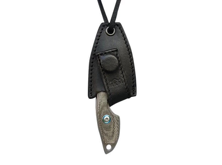 Klein aber fein präsentiert sich MKM Mikro 1 Micarta Green. Das von Jesper Voxnaes entworfene Neck Knife verfügt über eine Droppoint Klinge aus hochfestem Böhler M390. Der rutschfeste Griff aus Micarta liegt auch bei schwierigen Schneidarbeiten sicher in der Hand. Mit hochwertiger Lederscheide und Lanyard.