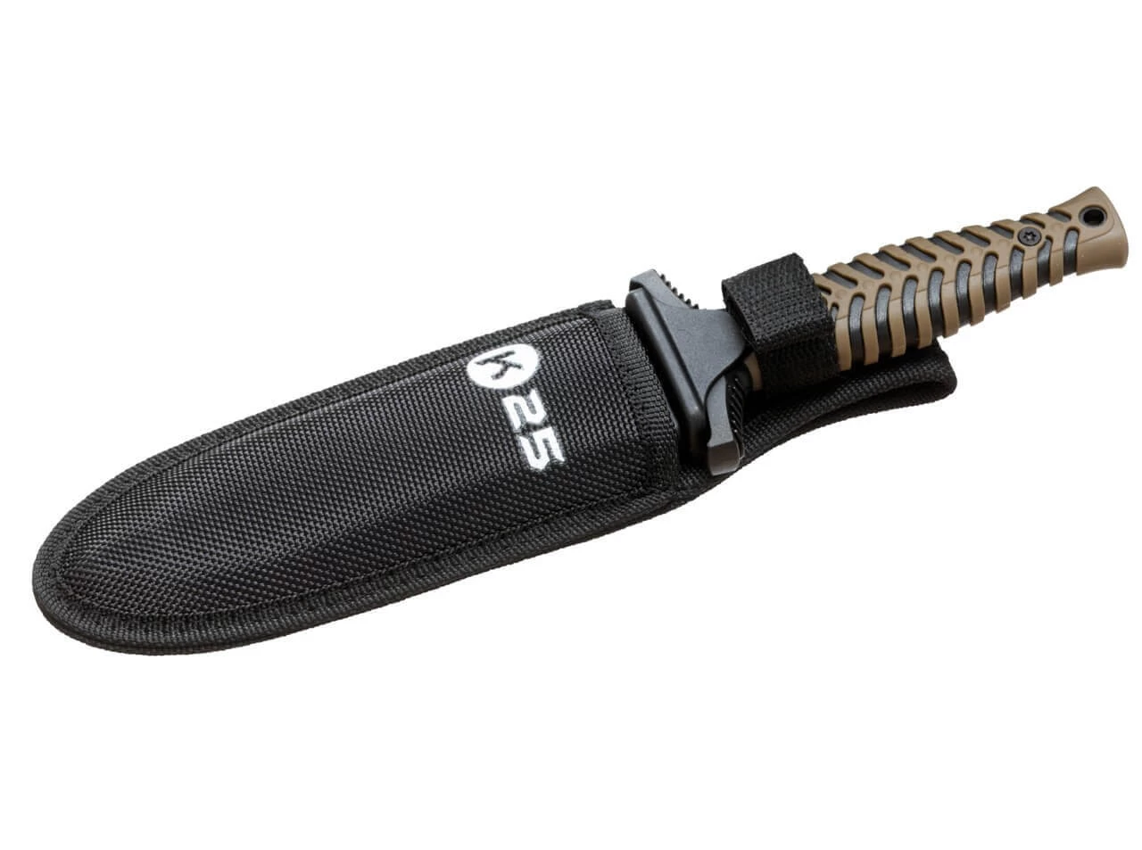 Dieser futuristische Dolch sucht seinesgleichen. Die stabile Konstruktion aus 7Cr17MoV ist von einem Zwei-Komponenten-Kunststoffgriff umschlossen. Die beidseitig geschliffene Klinge ist auch beidseitig mit einem partiellen Wellenschliff ausgestattet, der ein schnelles und effektives Kappen von Seilen oder Tauen ermöglicht. Mit Fangriemenöse und hochwertiger Nylonscheide mit Kunststoffeinsatz.