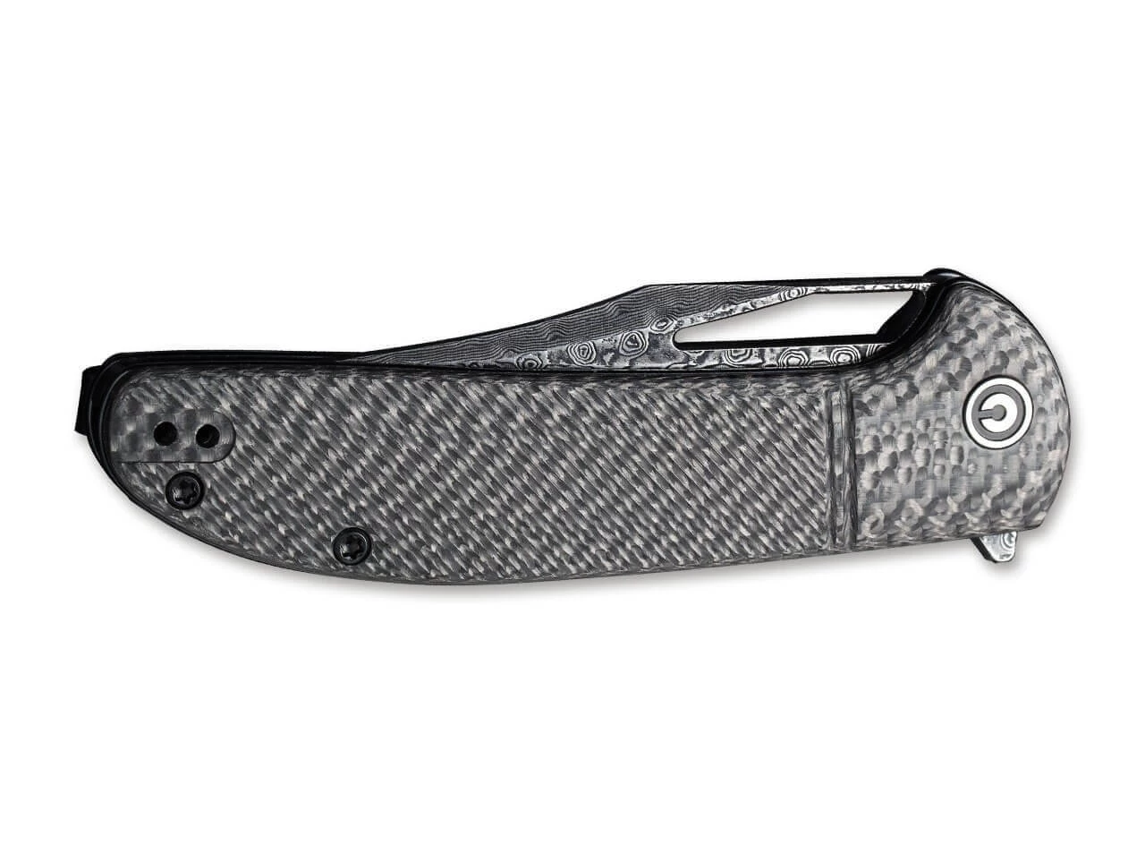 Das praktische CIVIVI Ortis Damascus Carbon bestreitet seinen Alltag mit der robusten Klinge aus edlem Damast und dem rutschfesten Griff aus Kohlefaser. Das Messer öffnet per Daumenöffnung und entriegelt per sicheren Linerlock. Mit umsetzbarem Clip (Tip-up/ l+r).