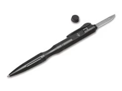 Der hochwertige Tactical Pen aus Aluminium beherbergt neben der Kugelschreibermine eine knapp vier Zentimeter lange D2-Klinge im Griffrücken. Somit können kleine Schneidarbeiten wie das Öffnen eines Paketes im Handumdrehen erledigt werden. Die Bedienung der Klinge erfolgt über den Clip.