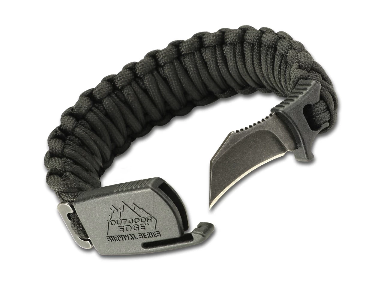 Das ParaClaw von Outdoor Edge verfügt über eine Hawkbill-Klinge aus 8Cr13MoV Edelstahl mit schwarzem Stonewash-Finish. Der patentierte Verschluss sichert die Klinge und hält das Armband aus schwarzem Paracord festgeschlossen, welches im geöffneten Zustand als Messergriff dient. Das Armband ist im Umfang von 18,0-20,0 cm verstellbar und in verschiedenen Größen erhältlich. Inkl. Beutel zur sicheren Aufbewahrung.