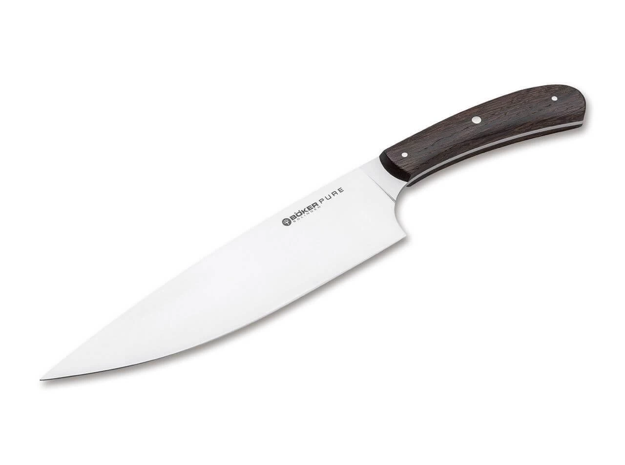Das Kochmesser, oder auch Chefmesser, zählt zu den wichtigsten Messern in der Küche und gehört zur Grundausstattung. Es hat eine etwas breitere und längere Klinge als das Allzweckmesser. Die schlanke Spitze eignet sich ausgezeichnet dazu Zwiebeln oder kleines Gemüse zu schneiden. Dank seine Länge, kann man es aber auch hervorragend als Fleischmesser benutzen. Auch große Gemüsesorten lassen sich problemlos damit verarbeiten.