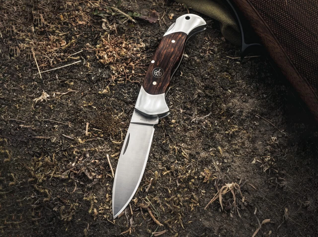 Die vollkommen neu konzipierte Spearpoint-Klinge mit eleganter Fehlschärfe auf dem Klingenrücken erfüllt dieses Anforderungsprofil perfekt. Das Scout wirkt nun moderner und dynamischer, ohne im Auftritt aufdringlich oder gar aggressiv zu sein. Für das erste Modell in dieser Ausführung haben wir matt poliertes, zertifiziert importiertes Wüsteneisenholz als Beschalungsmaterial gewählt, das hervorragend mit dem ergonomisch geformten Griffkörper aus gesintertem Neusilber harmoniert. Die Klinge wird aus N690 gefertigt und ist flach geschliffen.