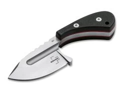 Das überaus handliche Böker Plus Sigyn ist ein leichtgewichtiges Neck Knife, das von Andre Schröter entworfen wurde und sich wie die bisherigen Modelle von Midgards Messer mit verschiedenen Griffschalen ausstatten lässt. Mit einem handelsüblichen 3D-Drucker lassen sich diese in den verschiedensten Formen, Farben und Materialien einfach selbst ausdrucken. Ausgeliefert wird das kompakte Dreifingermesser mit einem ergonomisch geformten Griff aus widerstandsfähigem G10. Die fein texturierten Griffschalen liegen auch bei Nässe sicher in der Hand und sind zusätzlich mit einer roten Fiberlage versehen. Riffelungen im Bereich der Daumenauflage erhöhen die Arbeitssicherheit zusätzlich. Die satinierte Droppoint-Klinge wird aus D2 gefertigt und ist mit einer dekorativen Hohlkehle ausgestattet. Mit Fangriemenöse, Kugelkette und passgenauer Kydex-Scheide.