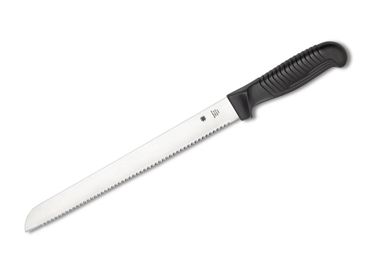 Spyderco Brotmesser mit einem egonomisch geformten Kunststoffgriff und dem berühmten Spyderco-Wellenschliff, speziell abgestimmt auf den Einsatzzweck.