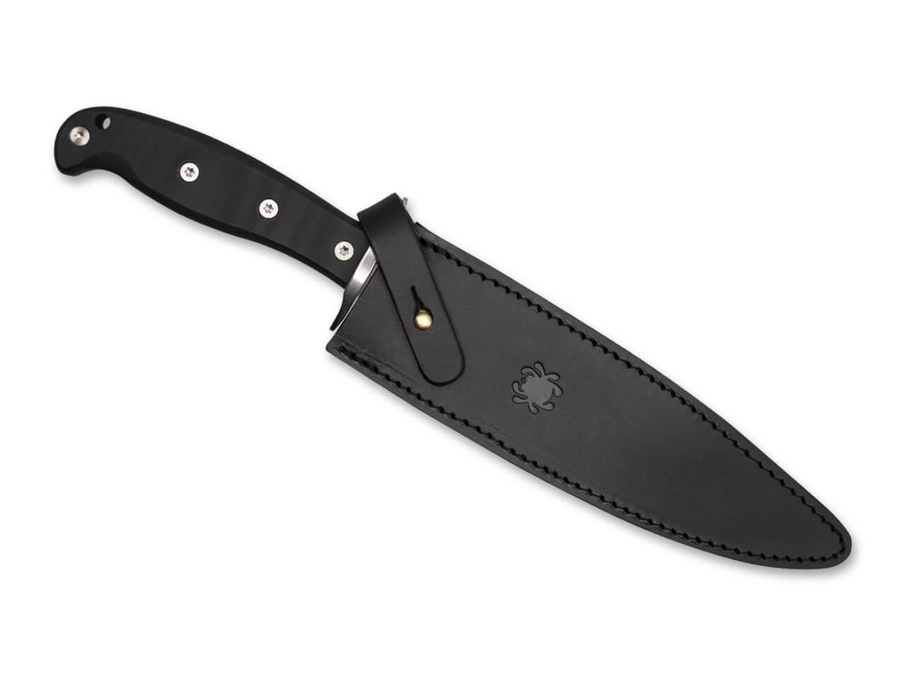 Das beeindruckende Respect ist die persönliche Interpretation des ur-amerikanischen Bowiemessers von Sal Glasser, dem Gründer von Spyderco. Es macht seinem Namen alle Ehre, denn jedes der 354 Gramm, die das Messer auf die Waage bringt, nötigt einem Respekt ab. Die wuchtige, 6 Millimeter starke Klinge aus dem pulvermetallurgischen CPM-154 ist für eine perfekte Schneidgeometrie flach geschliffen. Eine „Old-School“-Parierstange und nahtlos um die Angel gebaute G10-Schalen runden die beeindruckende Gesamterscheinung ab. Das Respect wird mit einer handgemachten Lederscheide geliefert.