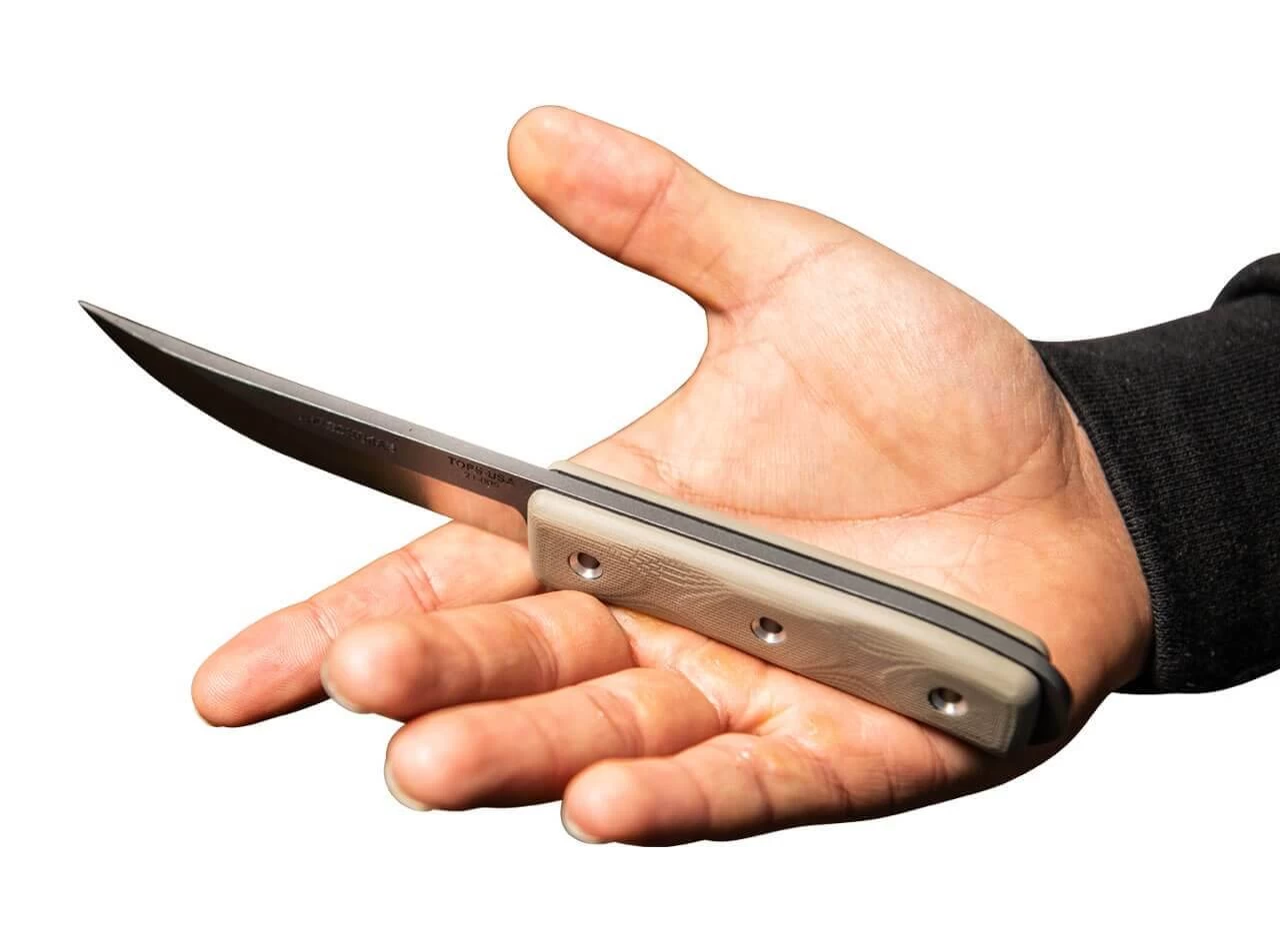 Hitze und Trockenheit bestimmen maßgeblich das Klima der Sonora Wüste im Süden der USA. Alles andere als staubtrocken präsentiert sich das TOPS The Sonoran. Das feststehende Messer in Vollerlbauweise ist mit einer dornigen Trailpoint Klinge aus 1095 und einem sandbraunen Griff aus konturiertem G10 ausgestattet. Praktisch: die Hohlnieten im Griff bieten eine Gewichtsersparnis sowie flexible Befestigungsmöglichkeiten, während das Griffende als Schlagfläche genutzt werden kann. Ist die Arbeit erledigt, wird das TOPS The Sonoran nicht in die Wüste geschickt, sondern findet Schutz in der passgenauen Lederscheide.