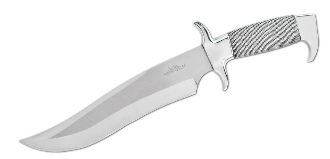 Neuauflage eines Klassikers von Gil Hibben im United Cutlery Sortiment. Dieses klassische Meisterwerk besitzt eine spiegelpolierte Klinge aus 420er Edelstahl. Beschläge, Handschutz und Abschlussknauf sind aus Edelstahl gefertigt. Der Griff ist dekorativ mit Silberdraht umwickelt. Ausgeliefert wird jedes Highlander Bowie mit einer Echtlederscheide mit Druckknopfverschluss. Diese ausgesuchten Exemplare sind nur in einem begrenzten Zeitraum verfügbar.