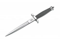 Das United Cutlery Gil Hibben Silver Shadow ist ein sehr schlankes und elegantes Messer. Es besitzt die Anmutung eines mittelalterlichen Dolches. Der mit Silberdraht umwickelte Griff, der polierte Abschlussknauf und der ausladende Handschutz tragen zu dem edlen Charakter dieses Sammlerstückes bei. Die Klinge besteht aus hochglanzpoliertem 420er Edelstahl. Auslieferung mit einer geprägten Echtlederscheide mit Gürtelclip.