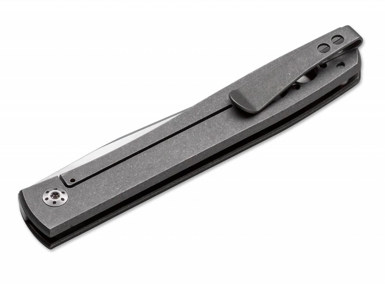 Basierend auf dem Grundmodell des Urban Trapper, bietet das Modell Urban Trapper 42 die gleiche hochwertige Ausstattung, ist jedoch anstelle des Flippers mit einem Nagelhau zur Zweihandbedienung ausgestattet. Bei gerade einmal 8 mm Griffdicke (gemessen ohne Clip) ist das Urban Trapper für seine normale Gebrauchsgröße mit dem Begriff “schlank” nur unzulänglich charakterisiert. Durch die großen Bohrungen und das verwendete Titan ist das Urban Trapper 42 mit gerade einmal 48 Gramm ein echtes Leichtgewicht, das auch in einer Anzughose oder in einer leichten Sommerhose extrem komfortabel zu tragen ist. Mit hochwertigem Nylon-Etui zur Aufbewahrung.