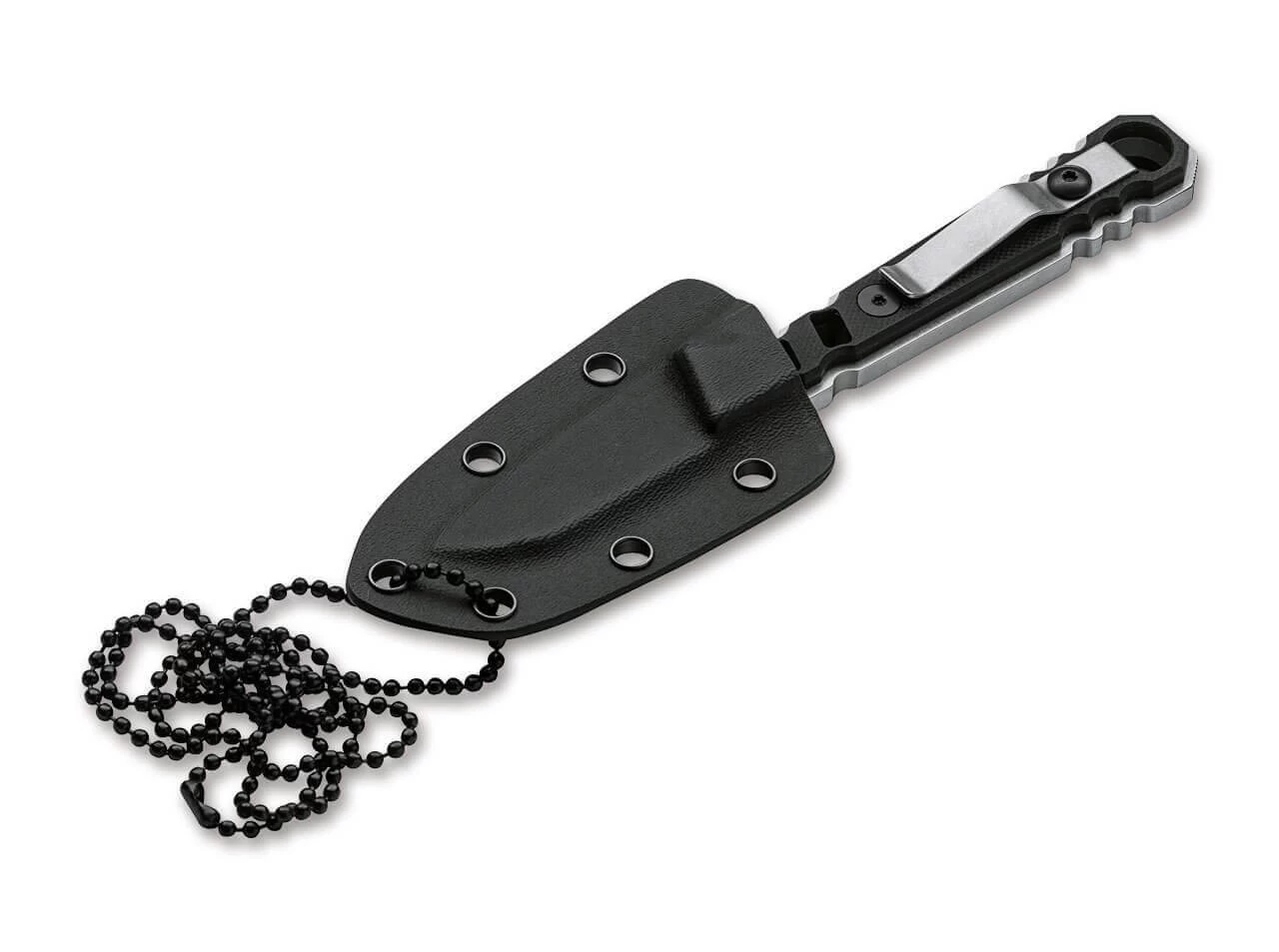 Das geradlinige Böker Plus Ylvi ist als praxistaugliches EDC-Messer und Neck Knife allen Schneidaufgaben des Alltags gewachsen. Es ist in Zusammenarbeit mit Dirk Hofmeister entstanden und lässt sich wie die bisherigen Modelle von Midgards Messer mit verschiedenen Griffschalen ausstatten, die mit einem handelsüblichen 3D-Drucker in den verschiedensten Formen, Farben und Materialien einfach selbst gedruckt werden können. Die überaus stabile Vollerl-Konstruktion aus D2 ist mit einem Stonewash-Finish versehen und liegt dank zahlreicher Riffelungen stets sicher in der Hand. Gewichtsreduzierende Aussparungen, eine dekorative Hohlkehle und eine großzügige Fangriemenöse runden die Ausstattung des Ylvi ab. Dank des praktischen Stonewash-Clips kann das Messer auch problemlos am Taschensaum befestigt werden. Mit Kugelkette und passgenauer Kydex-Scheide.